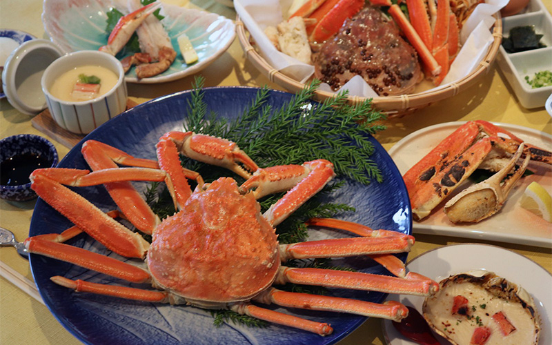 カニ刺し、焼ガニ、天ぷら、鍋など最初から最後までまさにカニ三昧。若狭の冬を味わい尽くしてください。
